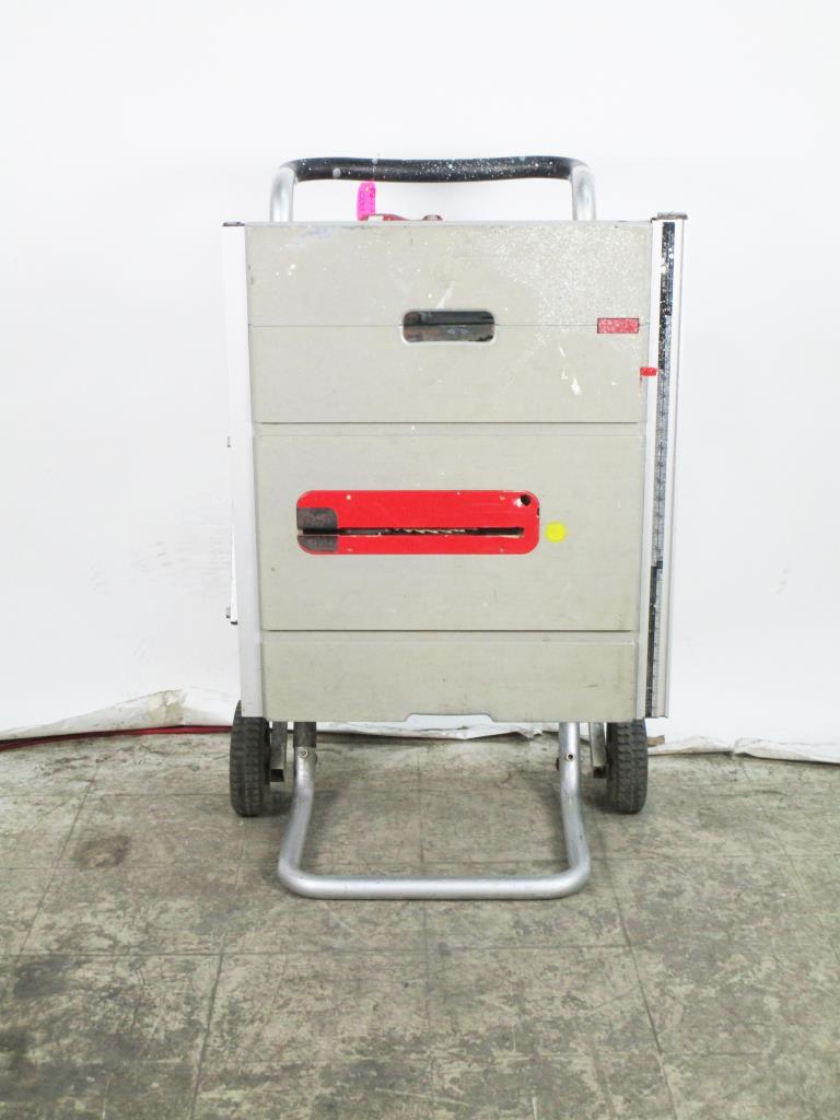 - Electric 3'+ cord, gravity rise stand, dual wheels w/ handle for easy mobility, 10" blade with 40 teeth, 45 degree angle cut, on/off switch, stand release on handle.