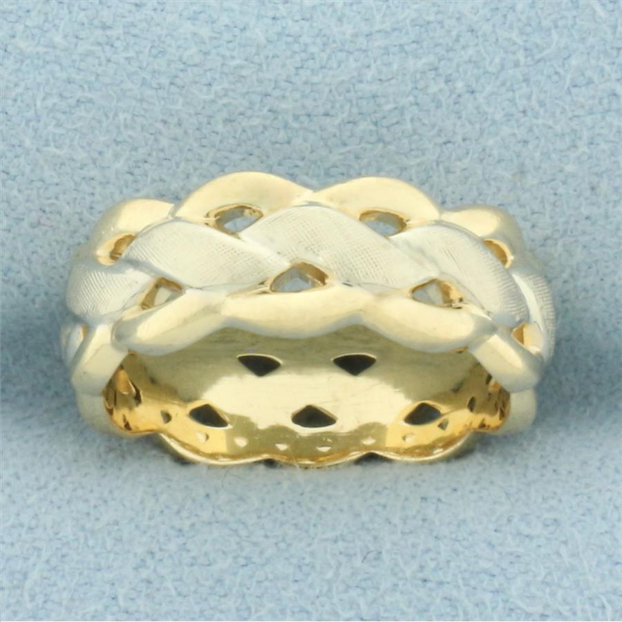 Braided Woven Design Band Ring in 14k Yellow and White Gold