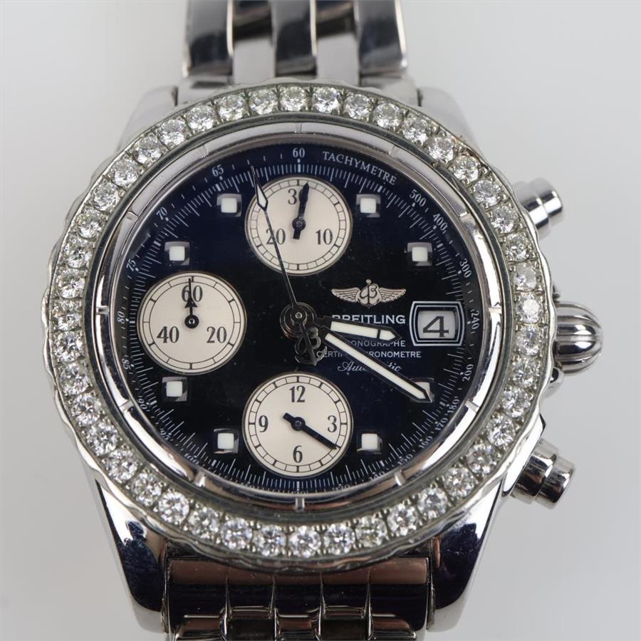 Breitling 2.20cts TW Diamond Cockpit Chronograph Watch-Evaluated By Our Certified Gemologist-AGS/GIA