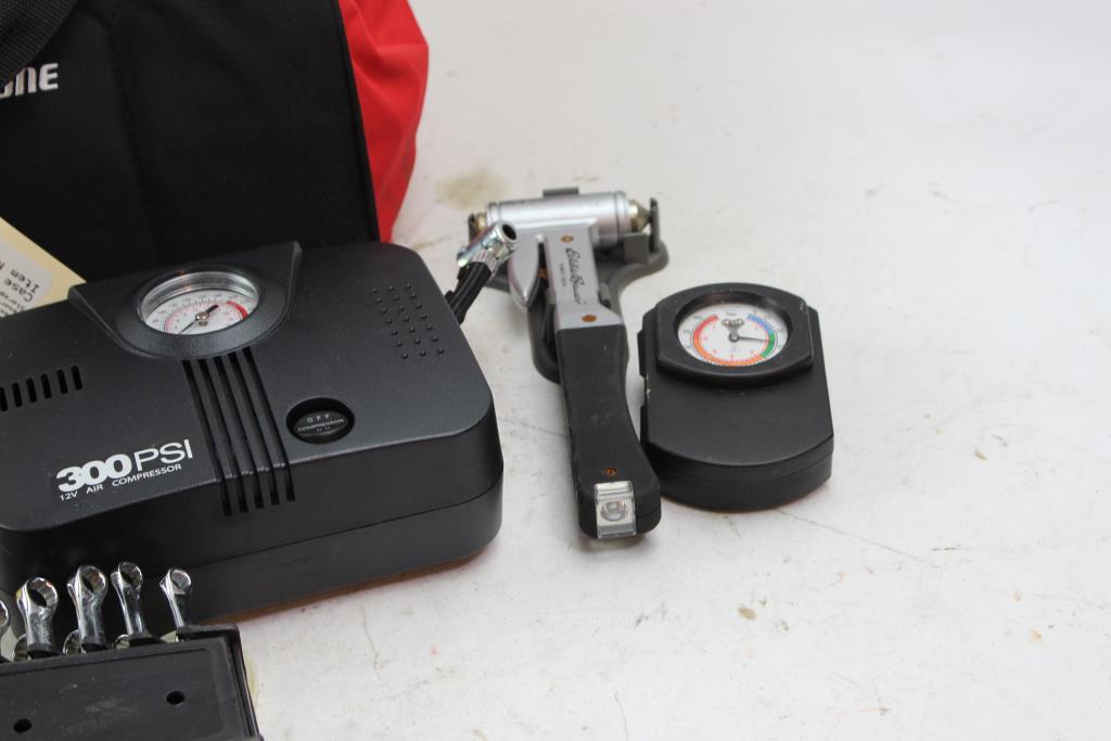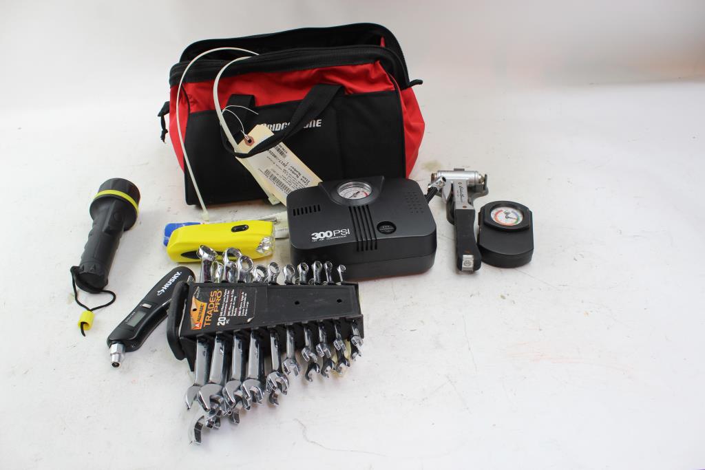 Bridgestone Tool Bag With Air Compressor, Tire Pressure Gauge And More