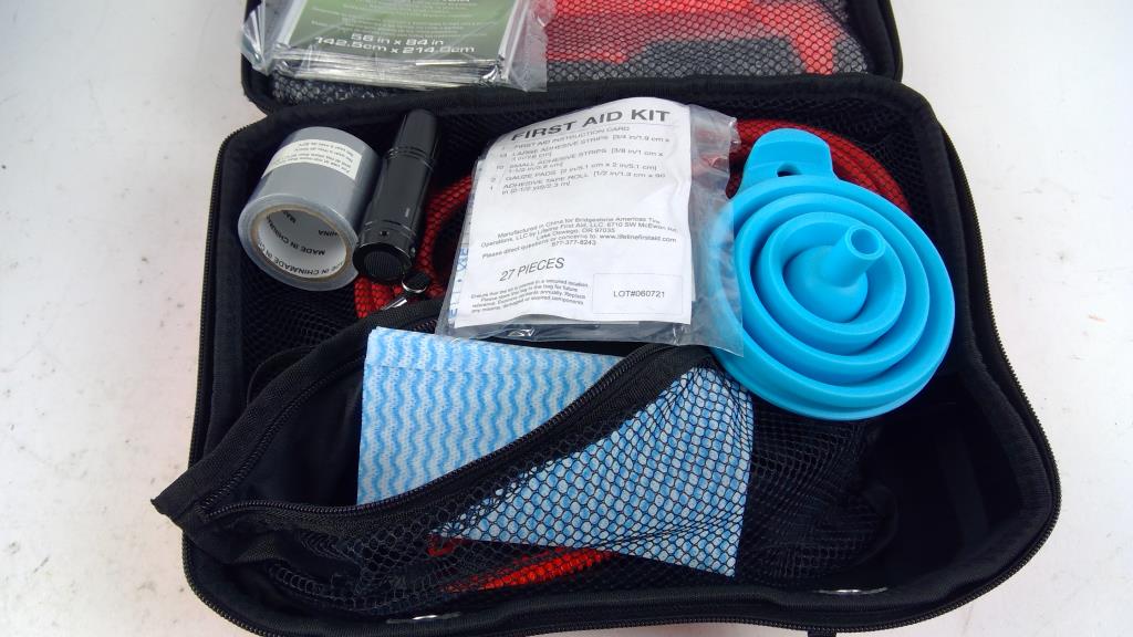 • Included: Gloves, Jumper Cables, Duct Tape, And More