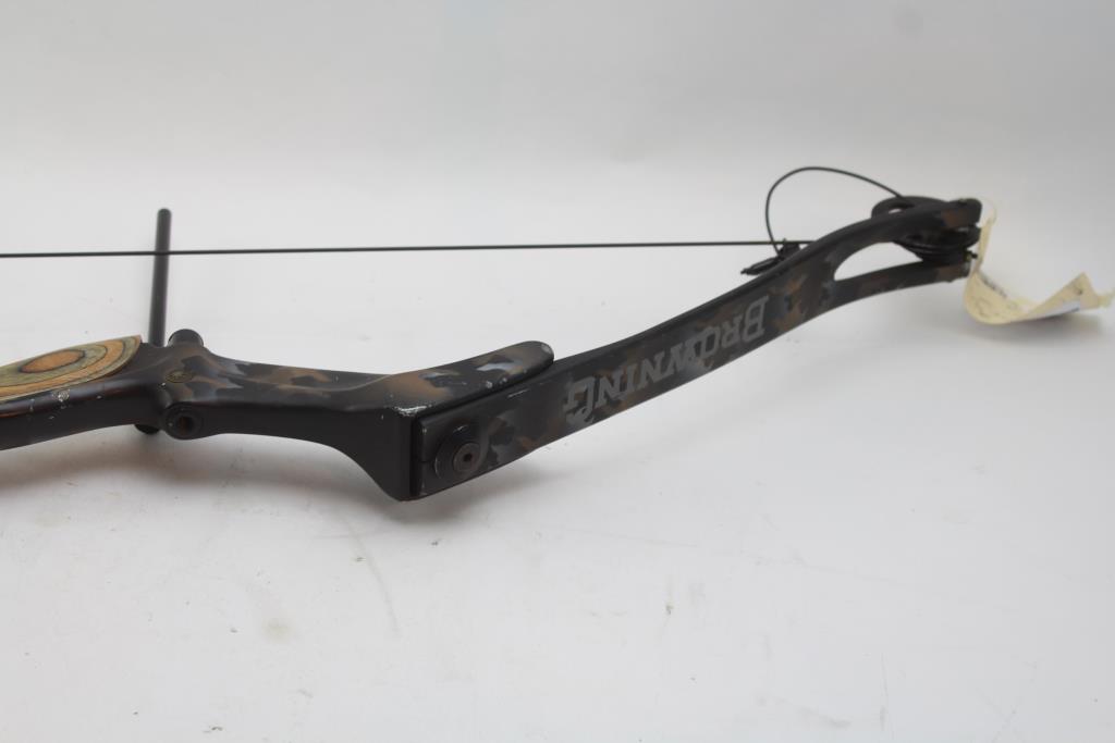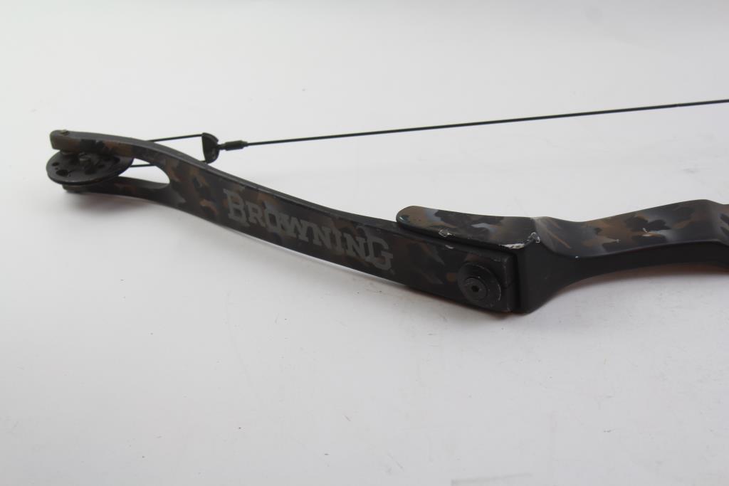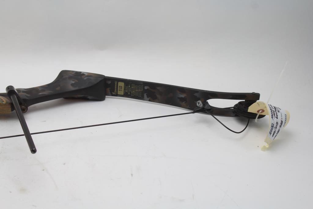 Get a great deal with this online auction for a bow presented by Property Room on behalf of law enforcement or public agency client. Model: Browning Maxim 5-1E28 Compound Bow Color: camouflage Bow Length: 44 1/4" Approx Let-Off %: 65 Pre-Set: 50 lb String Length: 56 1/2 Adjustable Range: 45 - 70 lb Draw: Right Hand Accessories: none Cosmetic Condition: Good to fair condition, visibly worn, dirty, has scratches, scuffs, and scrapes. Parts/ pieces may be missing. Shipment by PropertyRoom to any jurisdiction does not mean this item is legal in such jurisdiction. It is your responsibility to have knowledge of, obey, or comply with all applicable laws relating to this item.