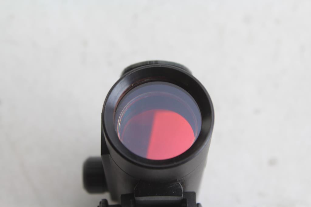 Accessories: mount included Length: 3 15/16" Cosmetic Condition: good condition, visibly worn, has scratches and is a little dirty Crosshair Condition: not present, red light appears Testing Results: red light powers on