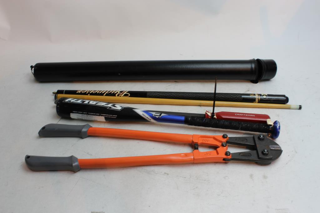 Budweiser Pool Cue, Easton Metal Tee Ball Baseball Bat And More