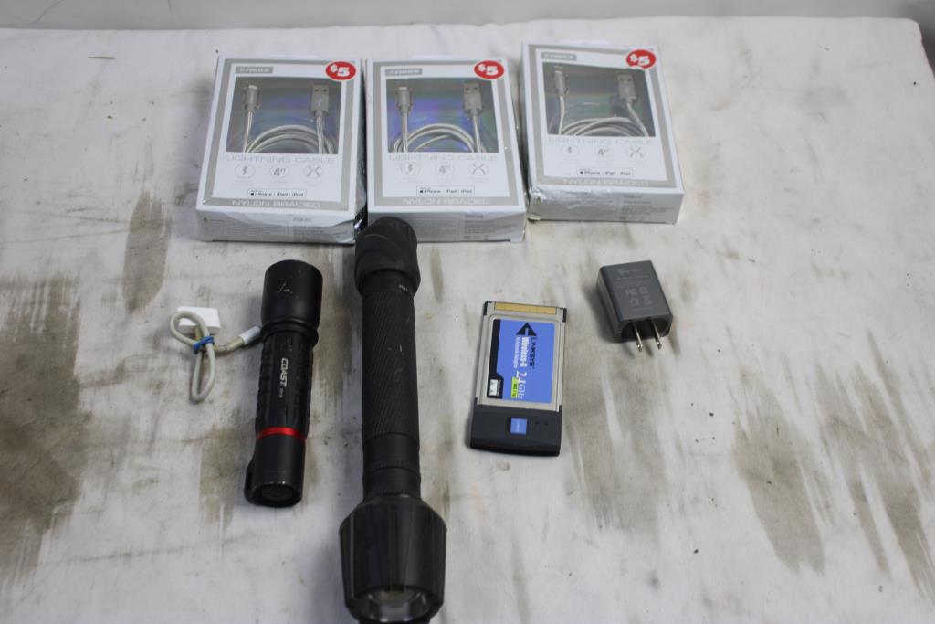 Bulk Lot, Speakers, Flashlight, Lightning Cable And More