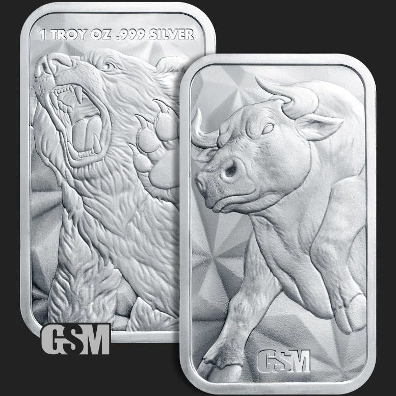Bull and Bear Market 1 oz Silver GSM Bar BU