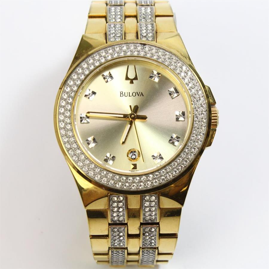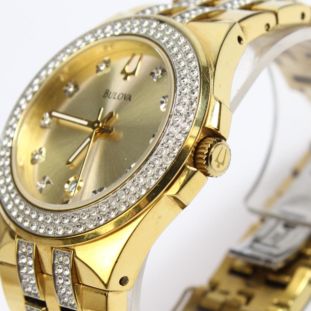 Bulova Crystal Gold- Tone Stainless Steel Watch