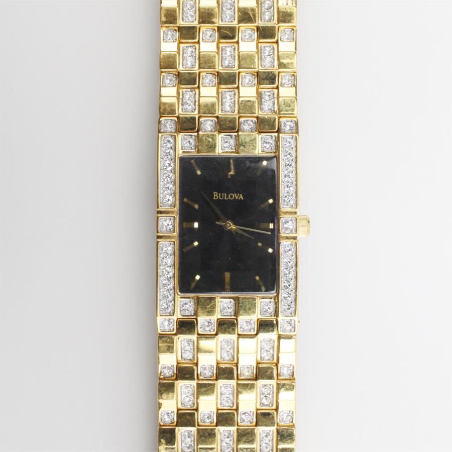 Bulova Men's Crystal Gold Tone Diamond Accented Watch