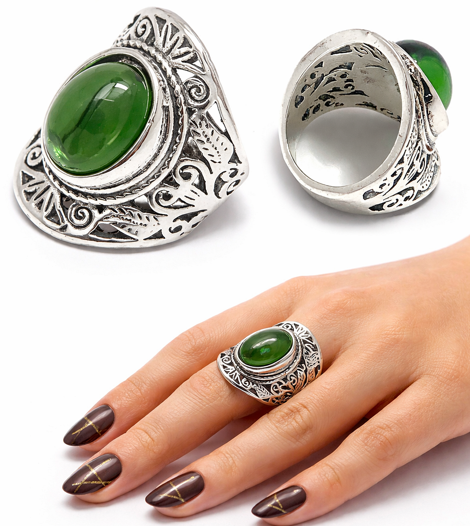 Cabochon Cut Emerald Ring Antique Design 18k Gold Overlay