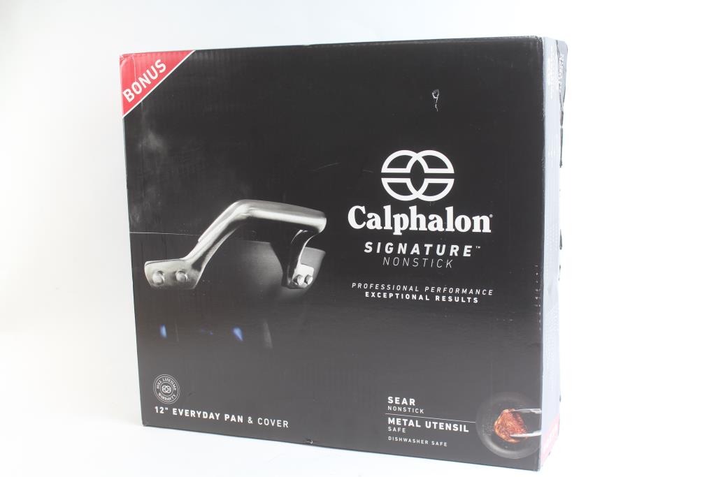 Get a great deal with this online auction for a Calphalon signature nonstick 12" everyday pan & cover presented by Property Room on behalf of a law enforcement or public agency client. - Calphalon Signature Nonstick 12" Everyday Pan & Cover