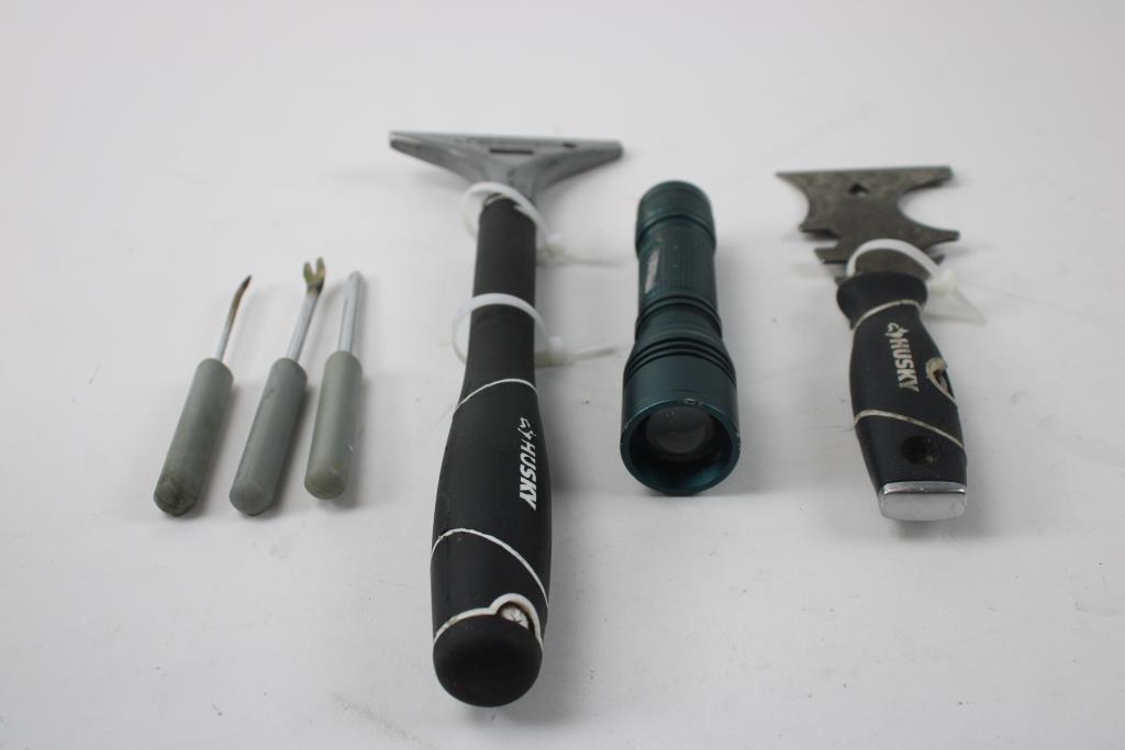 - Items: Charging cables, Scraping tool, Camera, Flashlight