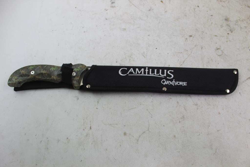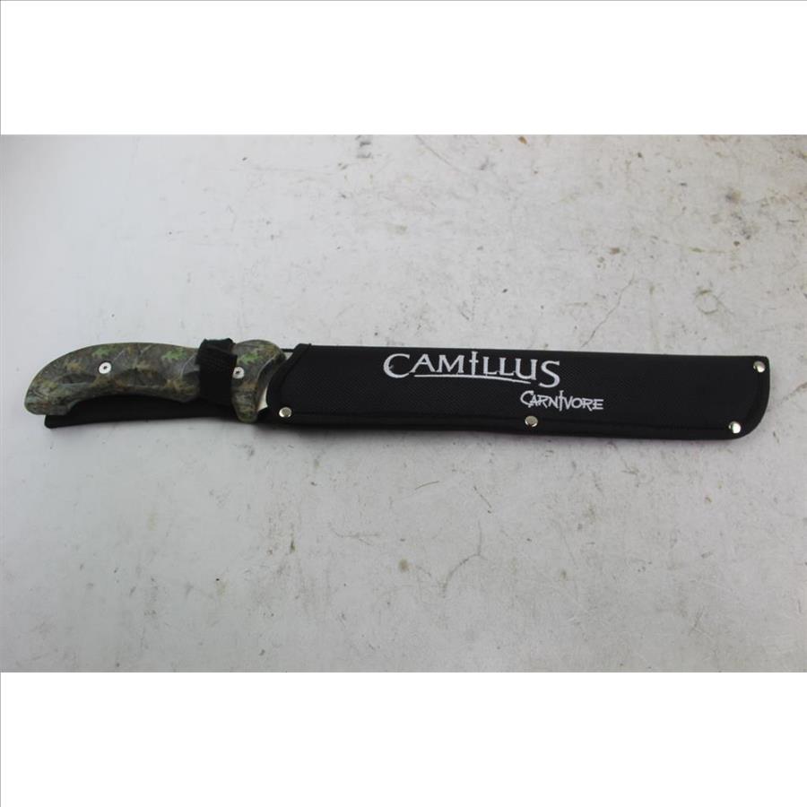 Get a great deal with this online auction presented by PropertyRoom.com on behalf of a law enforcement or public agency client. - Brand: Camillus Titanium Bonded Canivore Fixed Blade Knife And Sheath