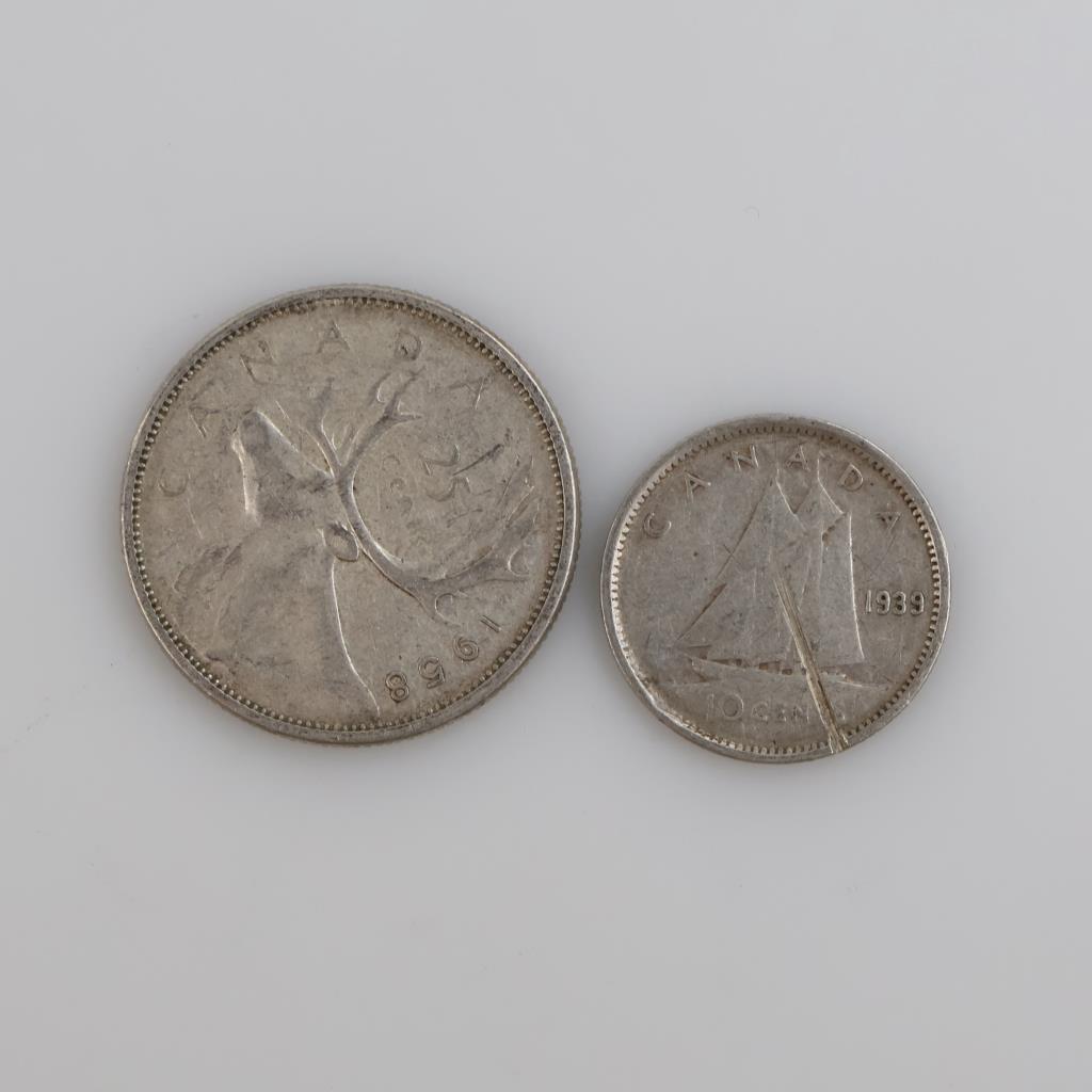 Canadian Silver Coins, 2 Pieces