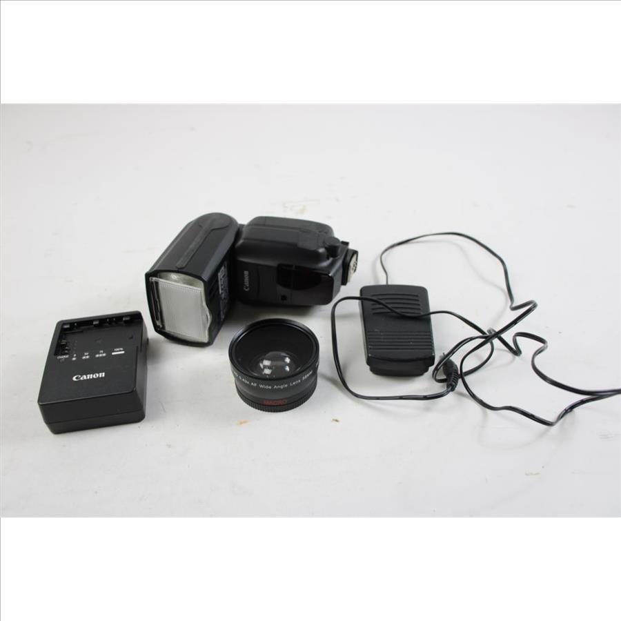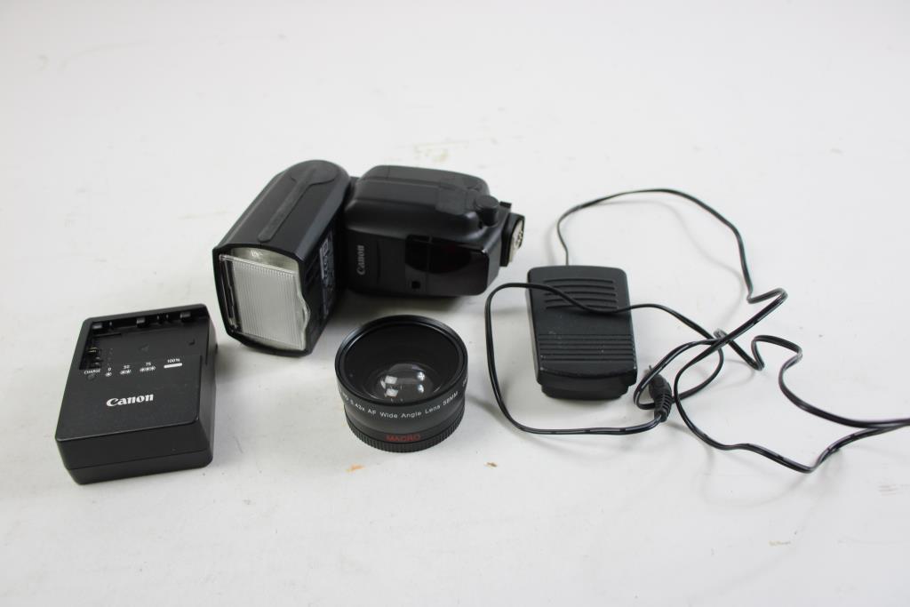 Canon Battery Charger, Flash Lens, Ultimax Studio Series Wide Angle Lens And More, 3+ Pieces