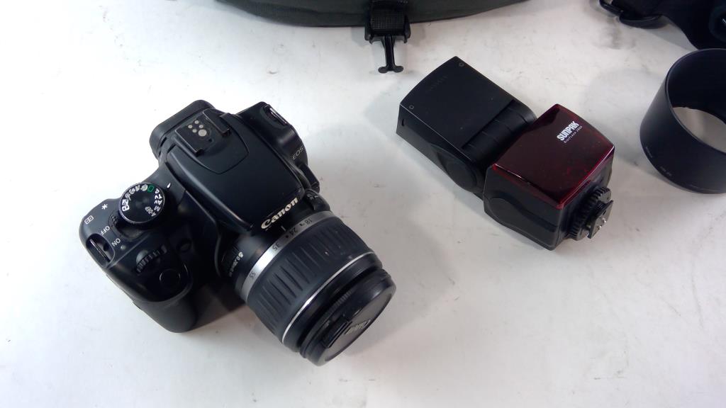 - Accessories: Canon EFS 18-55mm lens, SunPak DigiFlash 2800