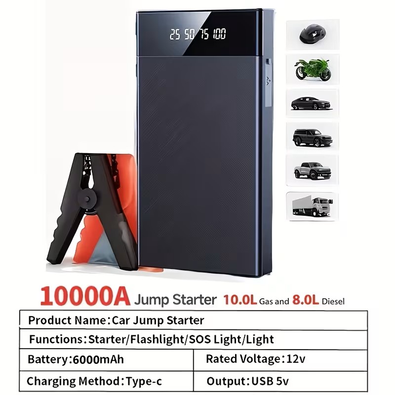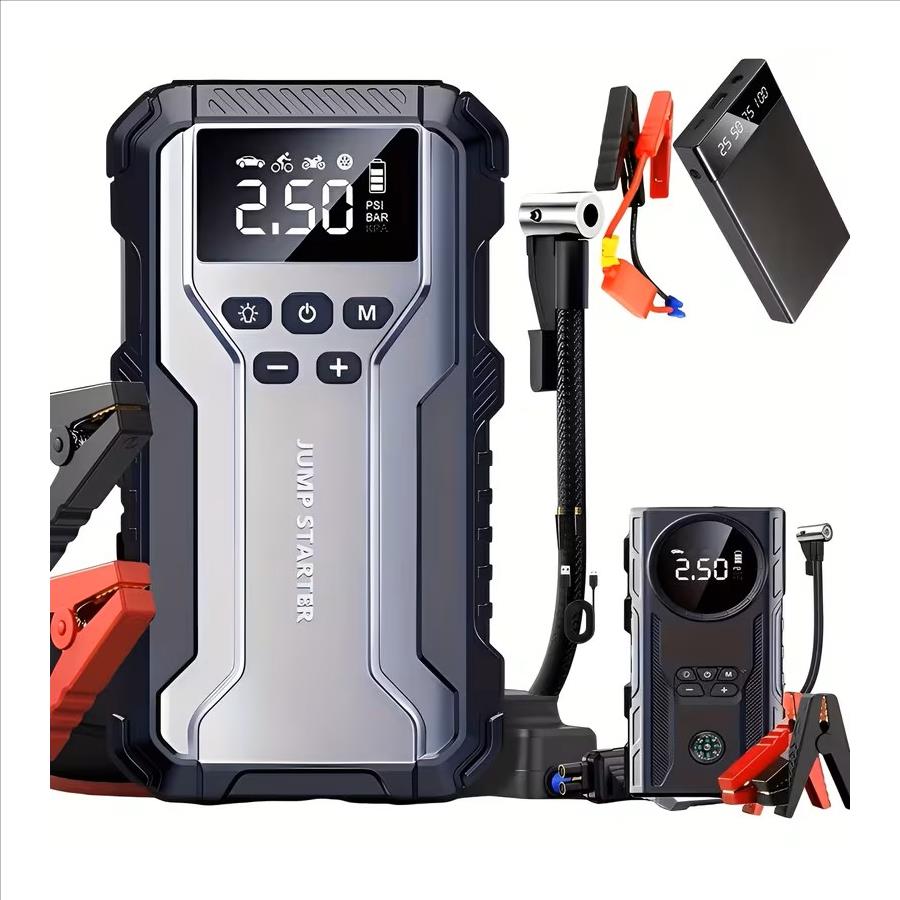 Car Battery Jump Starter, 10, 000mAh Portable Jumper Cable, Jump Starter with Air Compressor, Battery Emergency Start, Portable Peak, 12V (8.0L Gasoline/1.72 Gallon Diesel) Jump Starter for Cars, USB In/out, LED Emergency Lights, Auto Accessory Tools