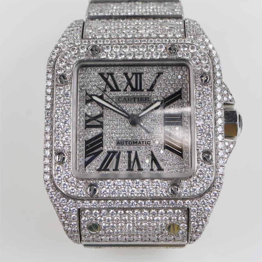 Cartier Santos 100 - 22.67cts TW Diamond Watch-Evaluated By Our Certified Gemologist-AGS/GIA