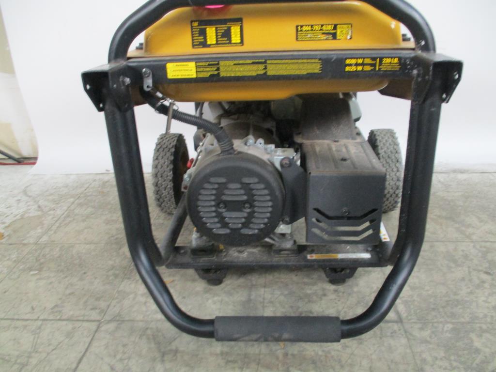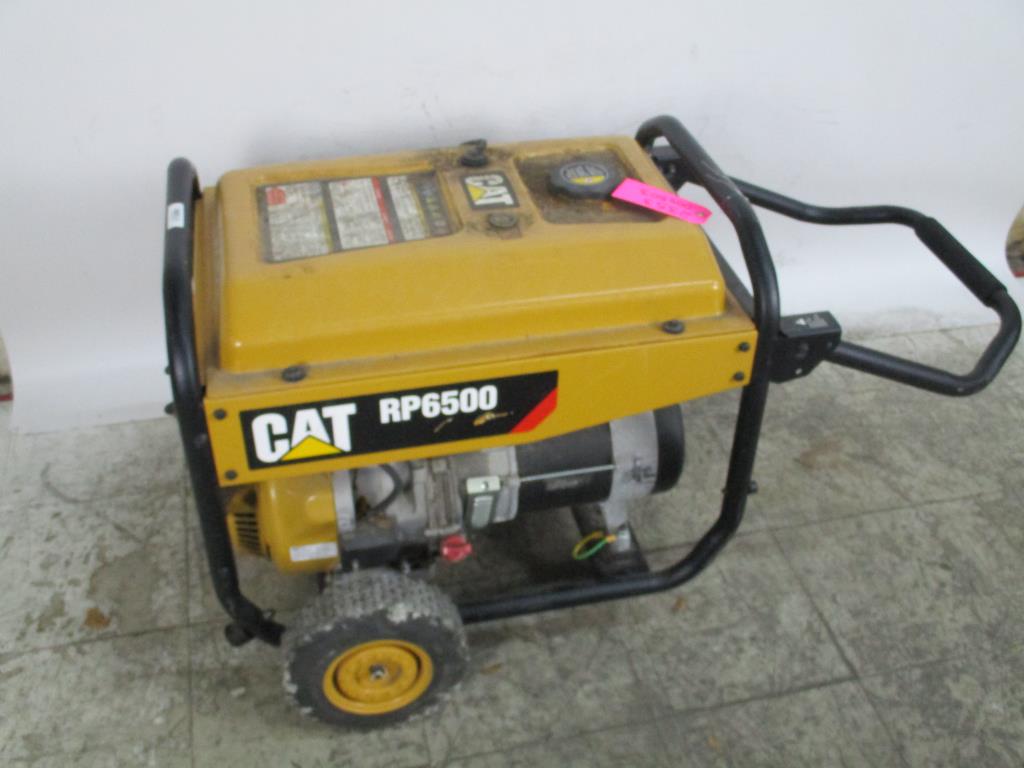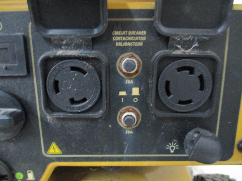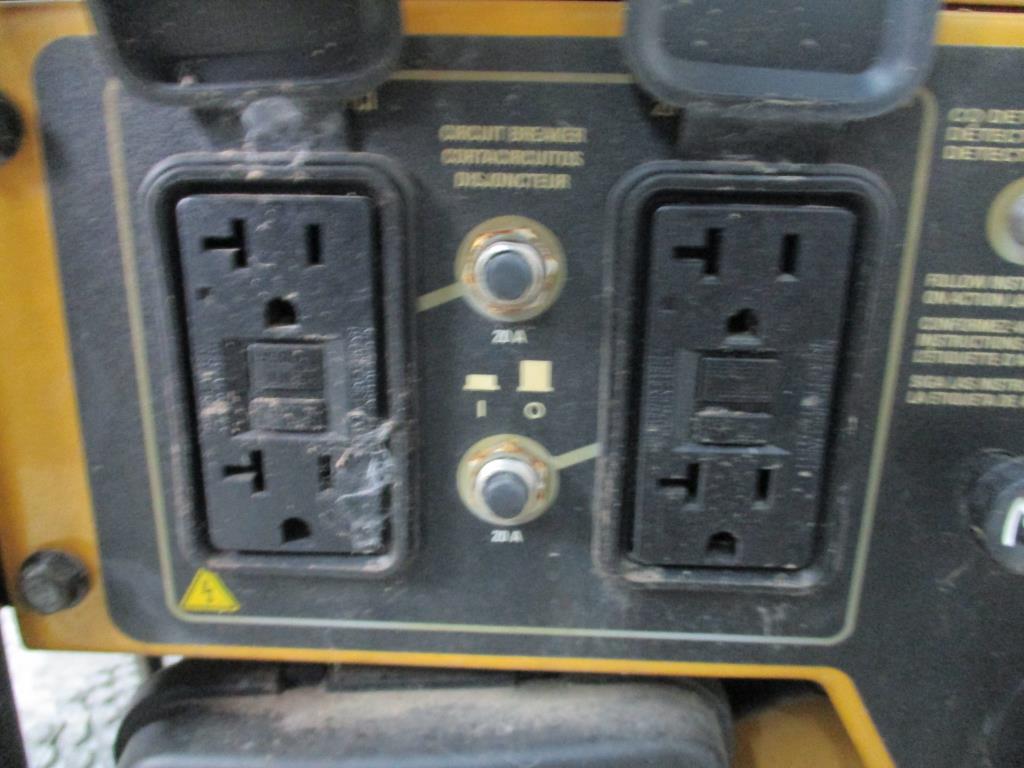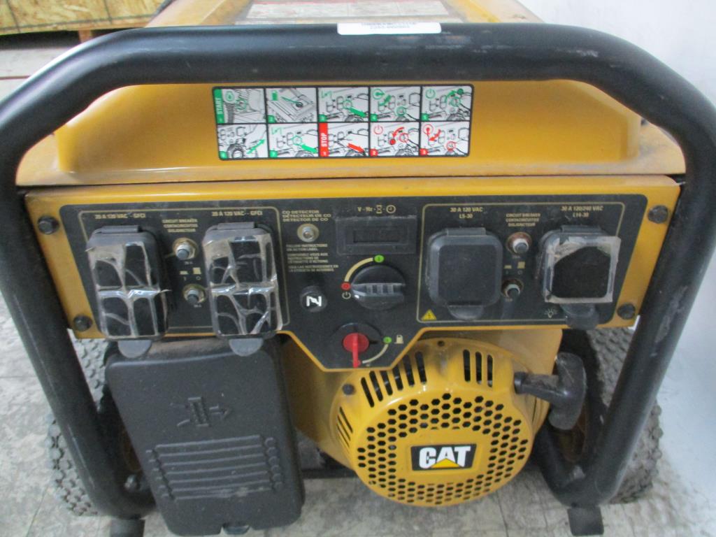 - gas powered, handle with dual wheels for mobility, cat engine, 2 dual plugs 20A 120vac GFCI, 2 20Amp circuit breakers, carbon detector, volt common implicator, gas on and off, choke, run start switch, 130 amp and 120 plug, 130 amp 120v 2 dual plugs, 2 circuit breakers