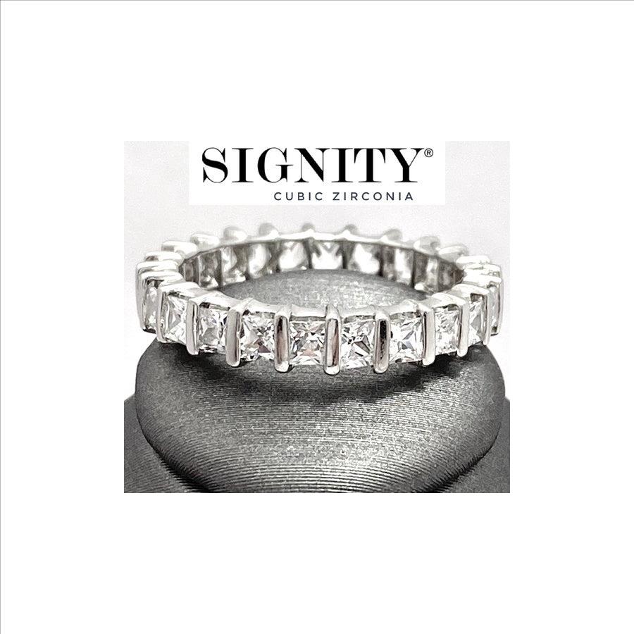 This ring feature our top quality 5A flawless Signity zirconia. These lab created simulated diamonds produce an incredible shine and brilliance. Each are carefully hand set by master jewelers onto a genuine 925 sterling silver base. The item is then rhodium coated to give you the exact same finish of white gold jewelry. This ring will give you the look, feel and experience of high end fine jewelry at a price that is affordable.