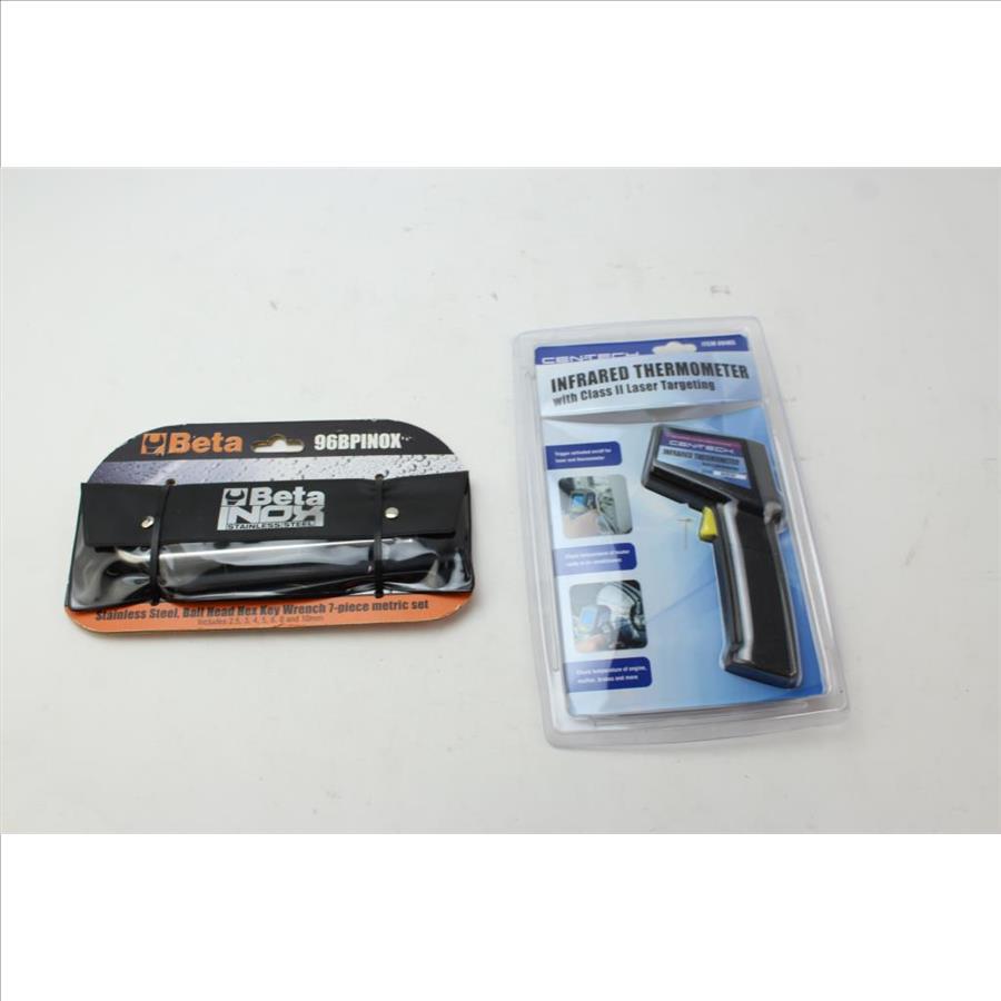 Get a great deal with this online auction presented by PropertyRoom.com on behalf of a law enforcement or public agency client. - Cen Tech Infrared Thermometer, Beta Ball Head Hex Key Wrench: 2 Items