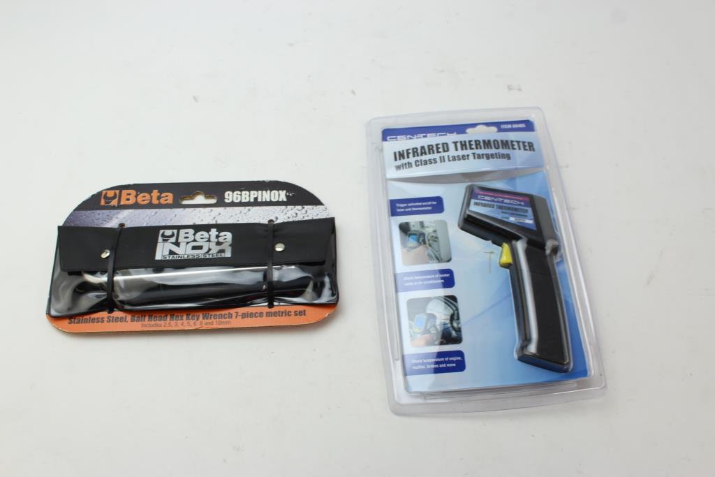 Get a great deal with this online auction presented by PropertyRoom.com on behalf of a law enforcement or public agency client. - Cen Tech Infrared Thermometer, Beta Ball Head Hex Key Wrench: 2 Items