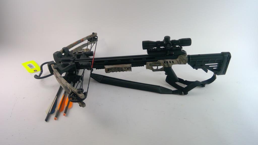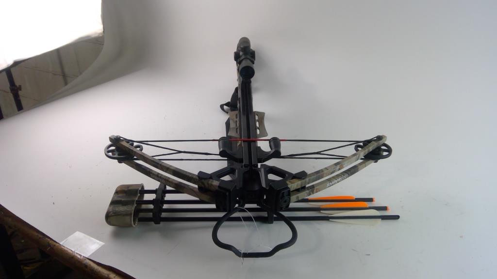 Get a great deal with this online auction presented by PropertyRoom.com on behalf of a law enforcement or public agency client. Model: Sniper370 Color: Camoflauge Bow Length: Appx. 36" Draw Length: Unknown Draw Weight: Unknown Draw: Ambidextrous Accessories: None Cosmetic Condition: Good with scratches Shipment by PropertyRoom to any jurisdiction does not mean this item is legal in such jurisdiction. It is your responsibility to have knowledge of, obey, or comply with all applicable laws relating to this item.