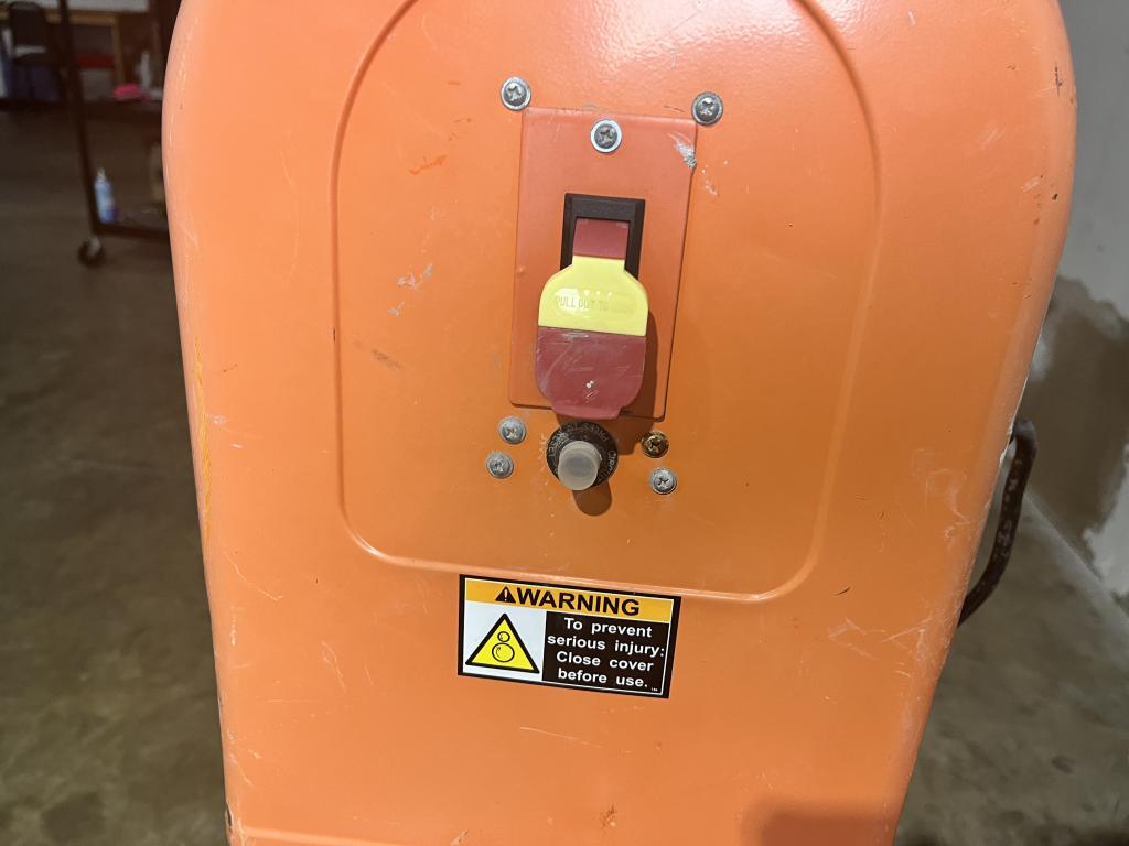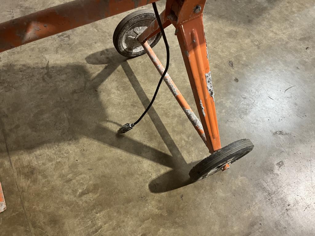 - Item info: large 9" wheels, safety lock, all steel unit for construction and farm use, wide 15" drum opening, orange in color