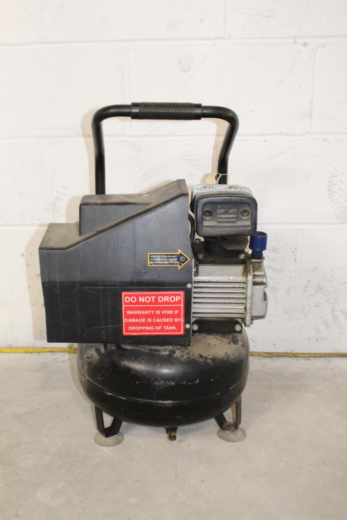 Get a great deal with this online auction for an air compressor presented by Property Room on behalf of a law enforcement or public agency client. - Central Pneumatic pancake compressor 90221