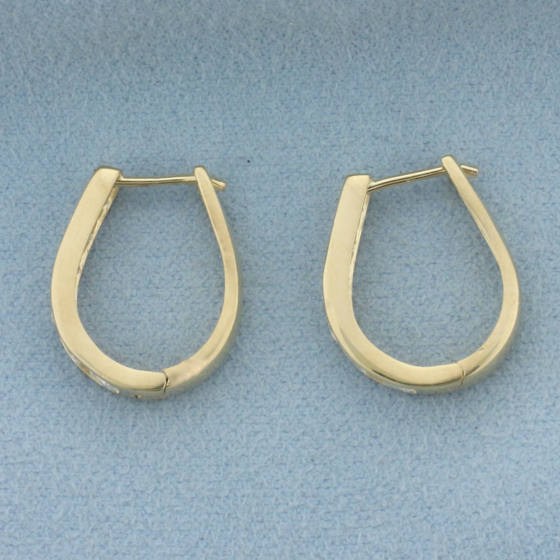 Channel Set CZ Hinged Hoop Earrings in 14k Yellow Gold