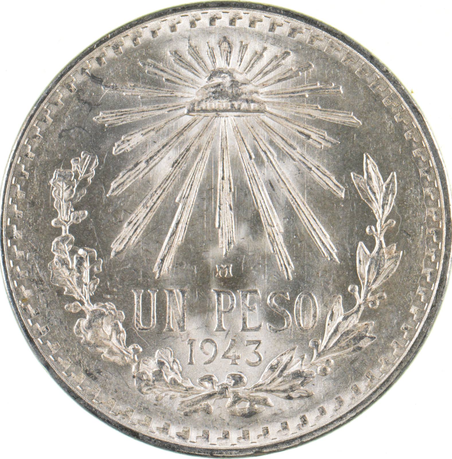 Choice Uncirculated - 1943 Mexico Mexican Un Peso Silver Coin - LARGE