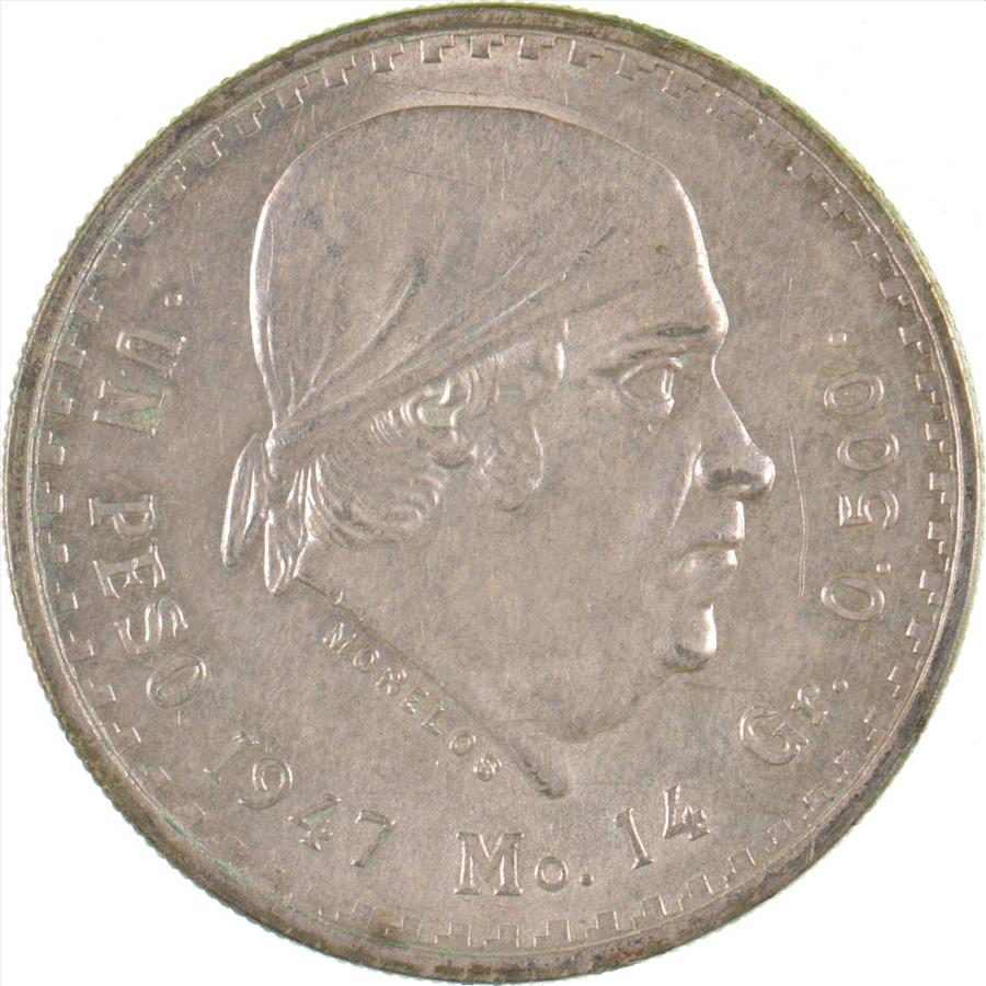 Choice Uncirculated - 1947 Mexico Mexican Un Peso Silver Coin - LARGE