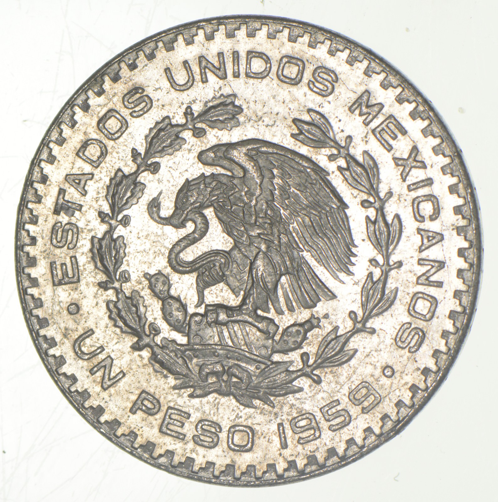 Choice Uncirculated - 1959 Mexico Mexican Un Peso Silver Coin - LARGE