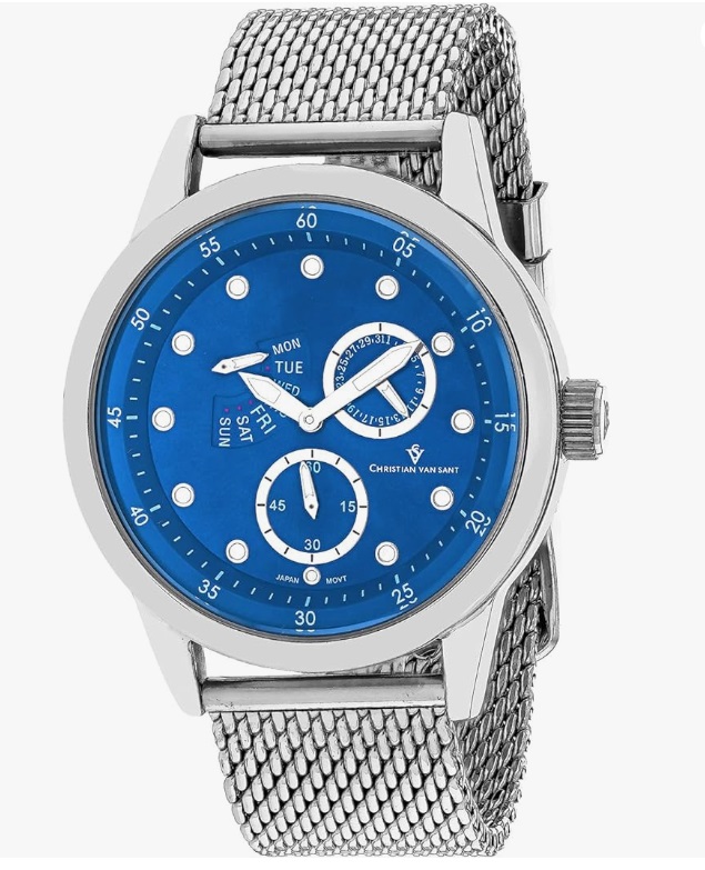 Christian Van Sant Watches, Men's Stainless steel case and bracelet, Blue dial, CV8717- Retail At (MSRP: $450.00)