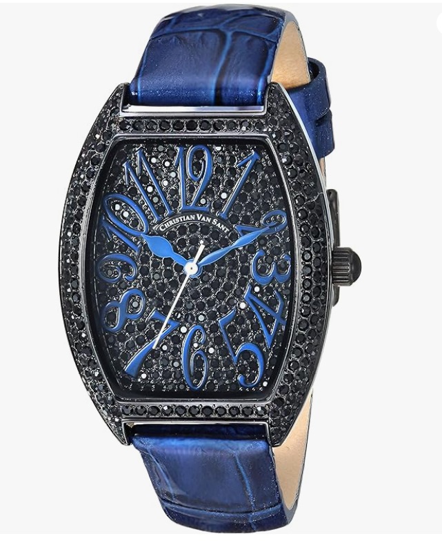 Christian Van Sant Watches Women's IP-Black tone, w/ setting Stone, Blue/Black dial CV4824 , Retail at (MSRP: $750.00)