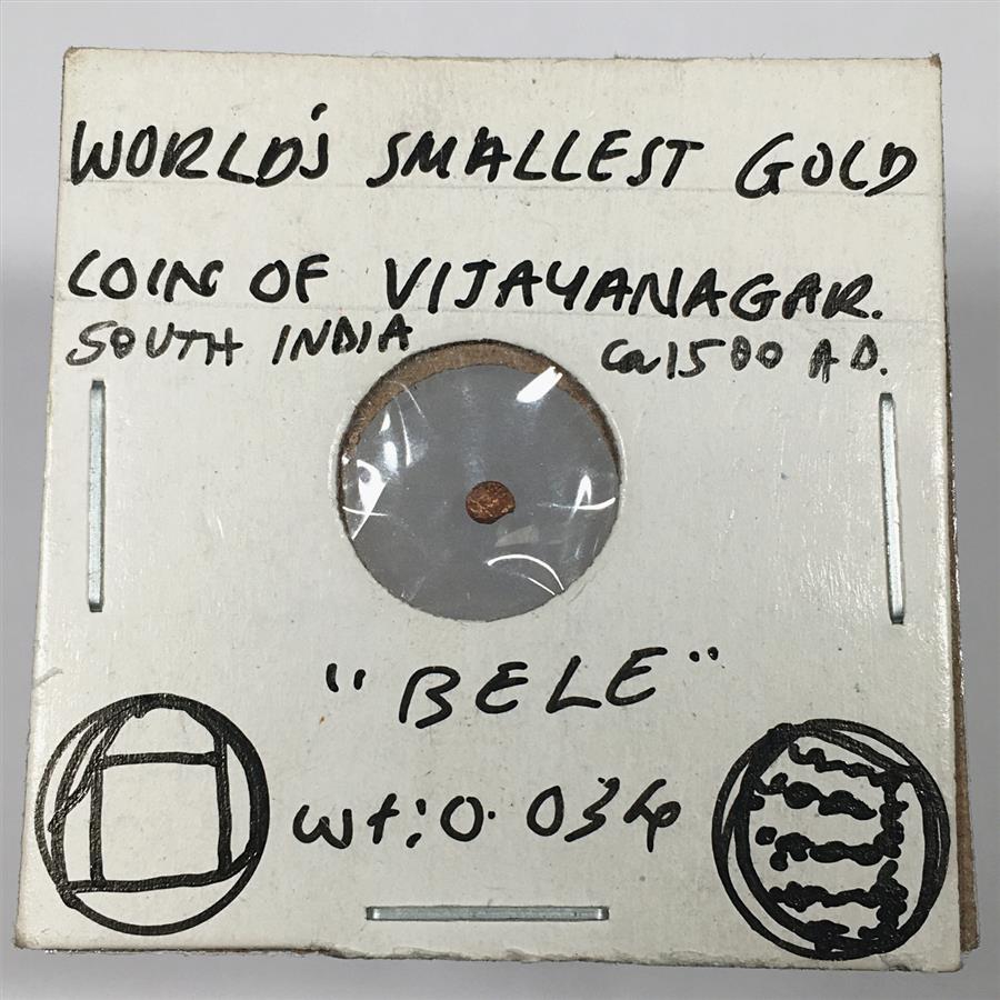 Circ. 1580 AD World's Smallest Gold Coin of Vijayanagar South India*1 Bele*0.034 grams