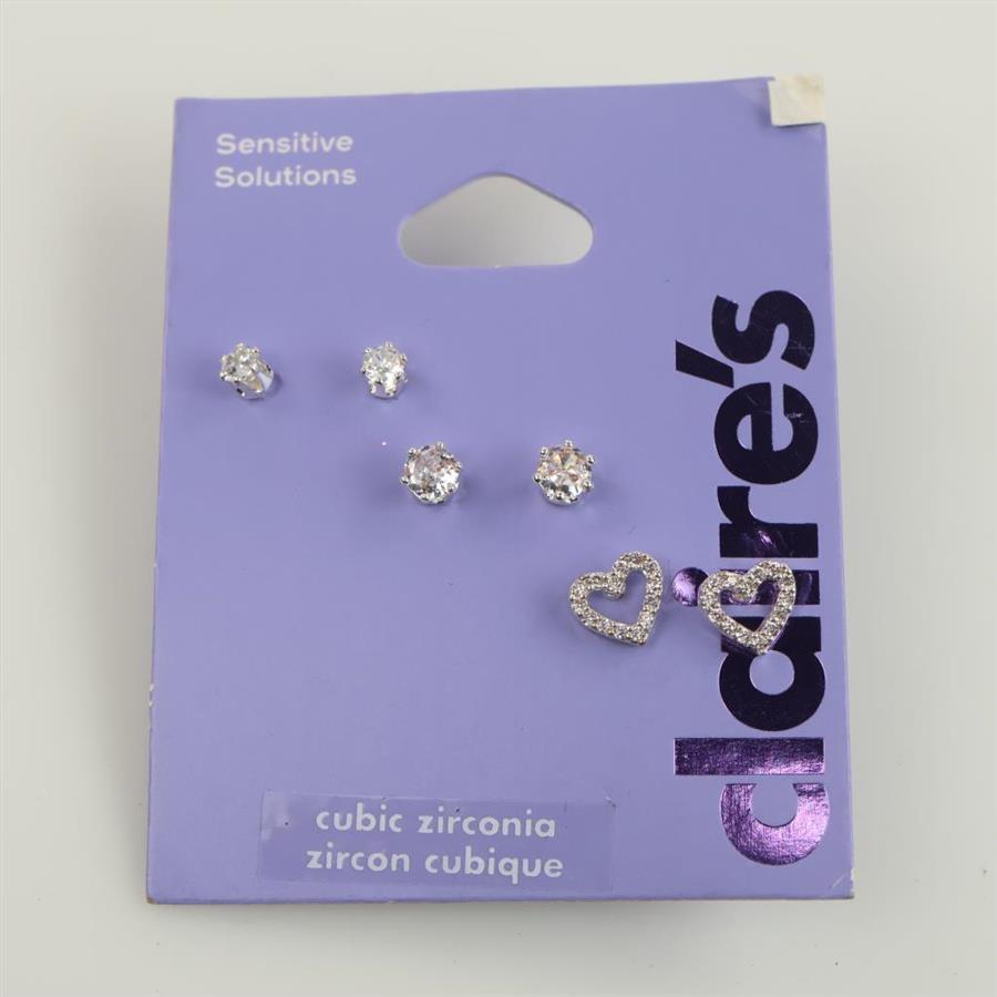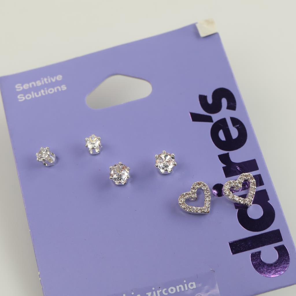 Claire's Sensitive Solutions Grey Metal Clear Stone Stud Earrings, 3 Sets