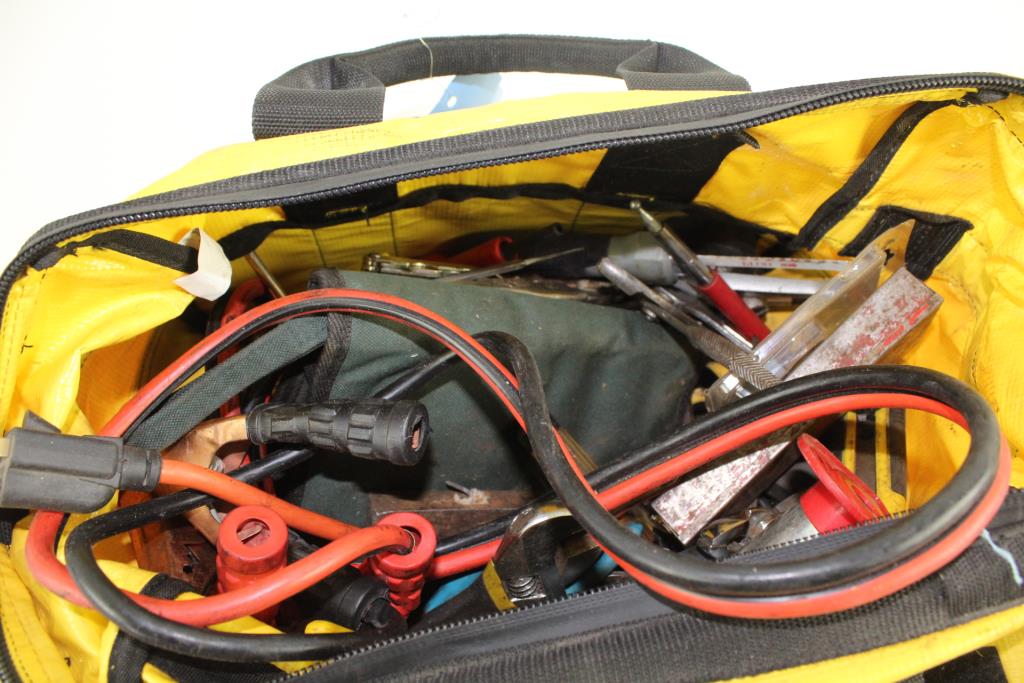 Get a great deal with this online auction for tools presented by Property Room on behalf of law enforcement or public agency client. - Custom Leather Craft 19" x 11" x 11" yellow and black tool bag with multiple storage compartments
