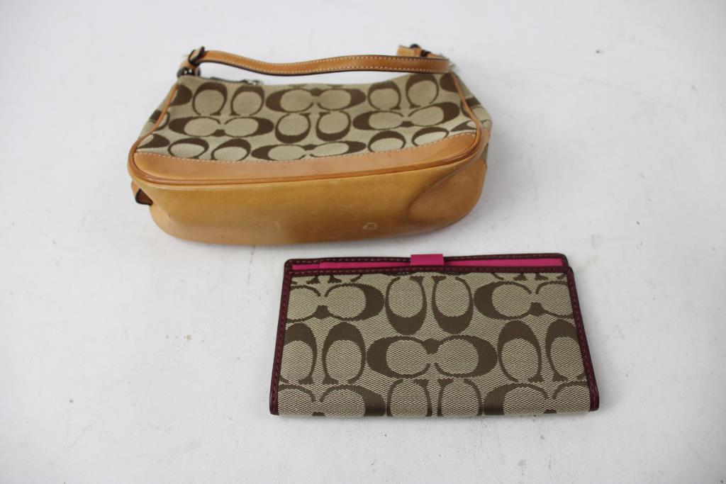 Coach Brown/Light Tan Handbag With Folding Wallet
