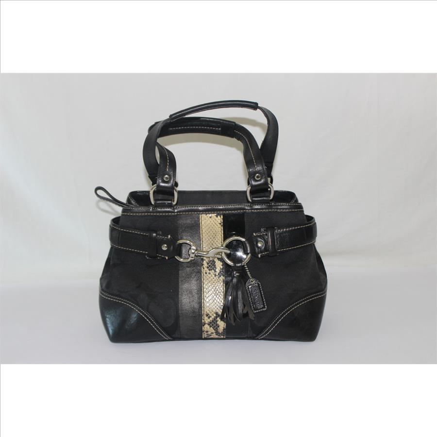 Coach Hampton Black Signature Python Satchel