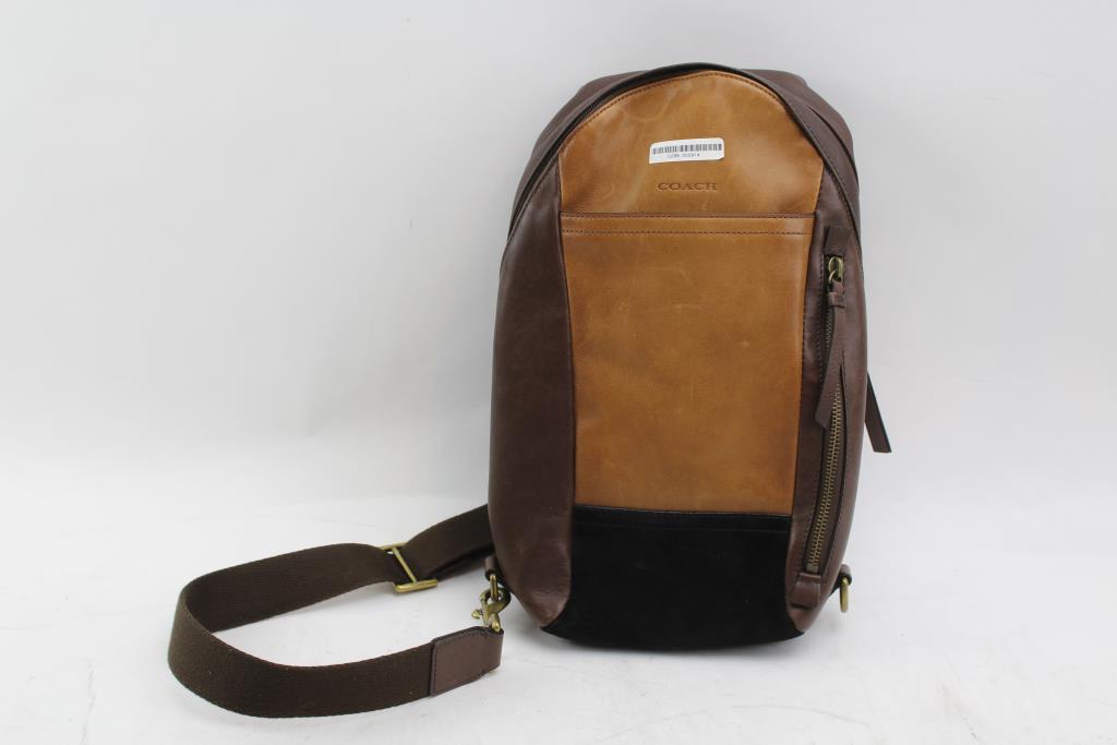 Get a great deal with this online auction for a Coach Leather Single Strap Backpackpresented by Property Room on behalf of law enforcement or public agency client. - Exterior Color: Brown & Black w/Gold Hardware