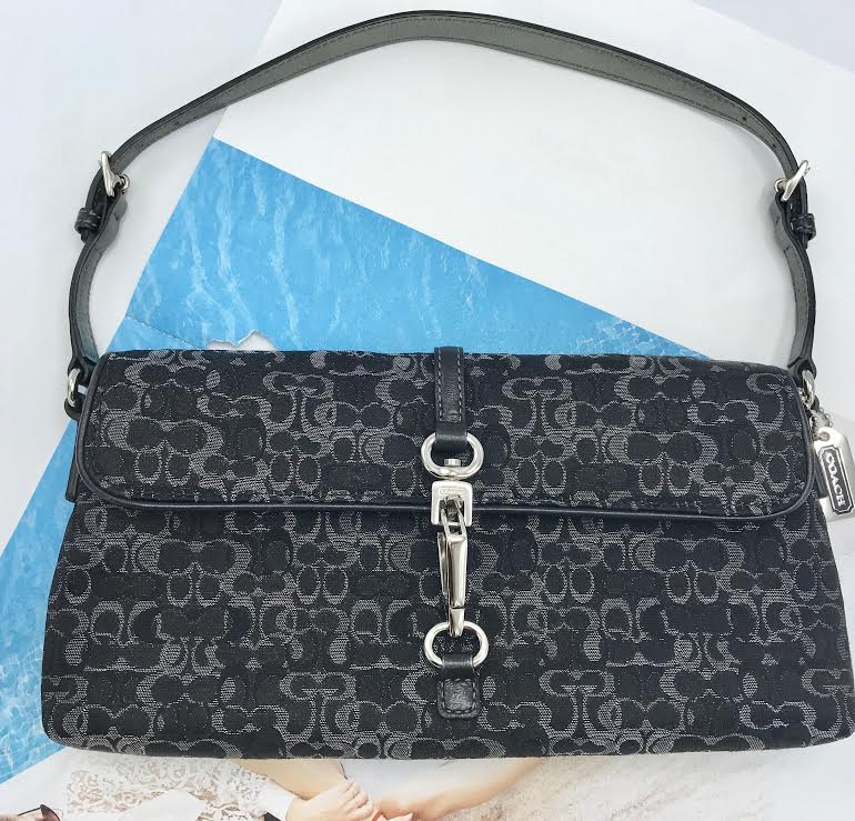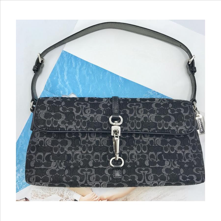 COACH Metallic Signature Fabric Baguette Demi Clip Small Bag Purse G05M-3595