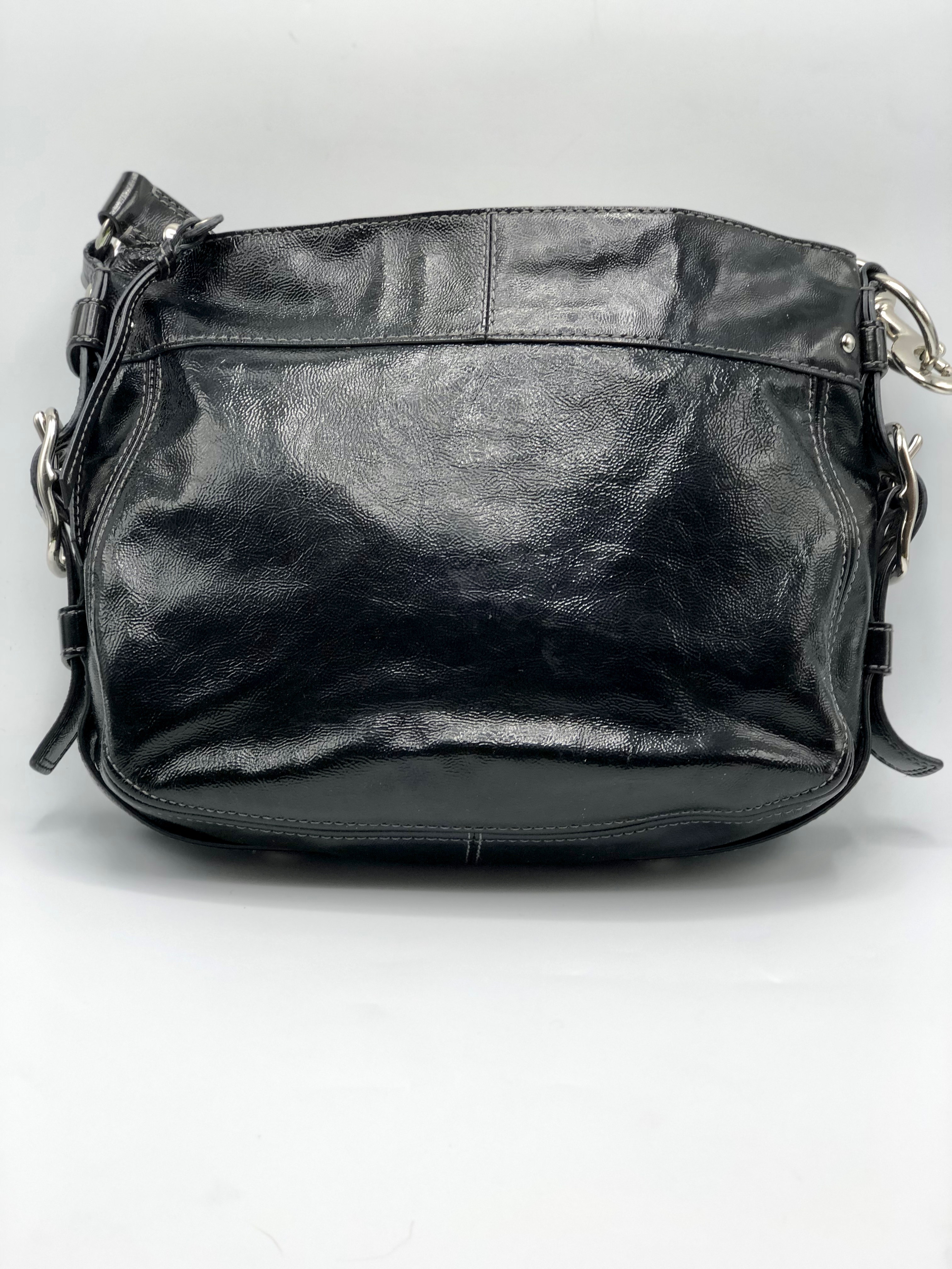 • Item #: 5057 oss Coach Zoe Black Patent Leather Shoulder Hobo Bag F12735 Retail $350