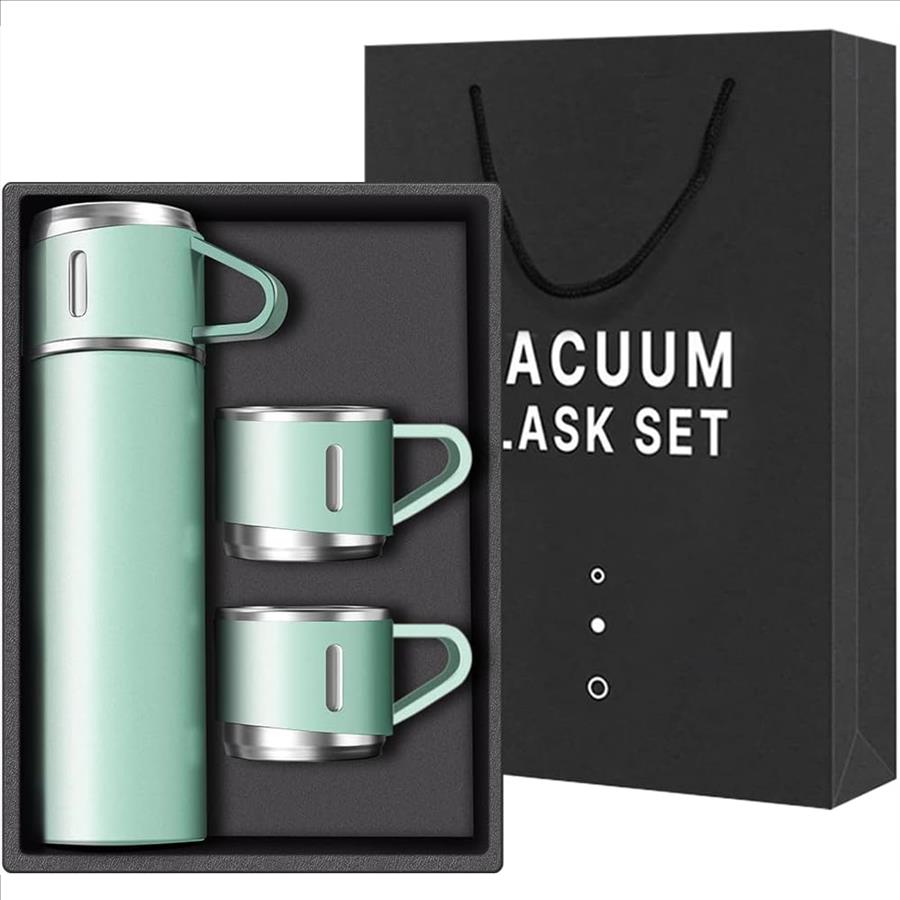 Coffee Thermo Bottle -Vacuum-Insulated Stainless Steel Travel Mug, 16oz Insulated Bottle with Cup for Hot & Cold Drink Travel Mug (Green, Three Cup)