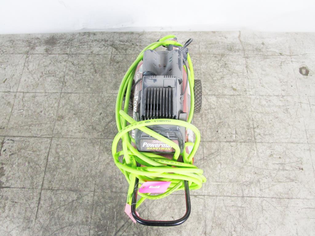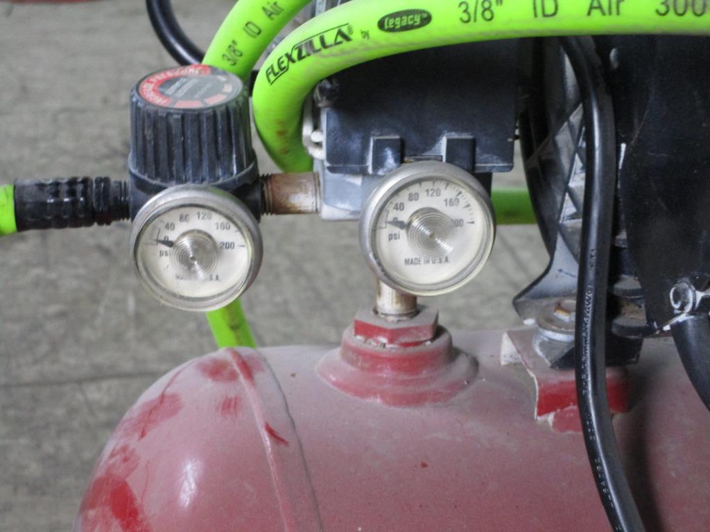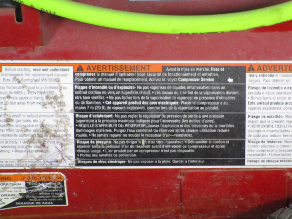 - Accessories: electric, 11 gallon tank, handle w/ dual wheels for easy mobility, Pressure guage, 300psi, 5hp.