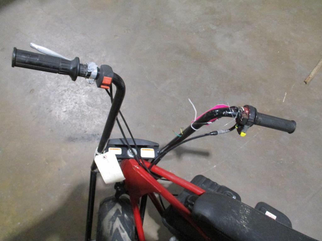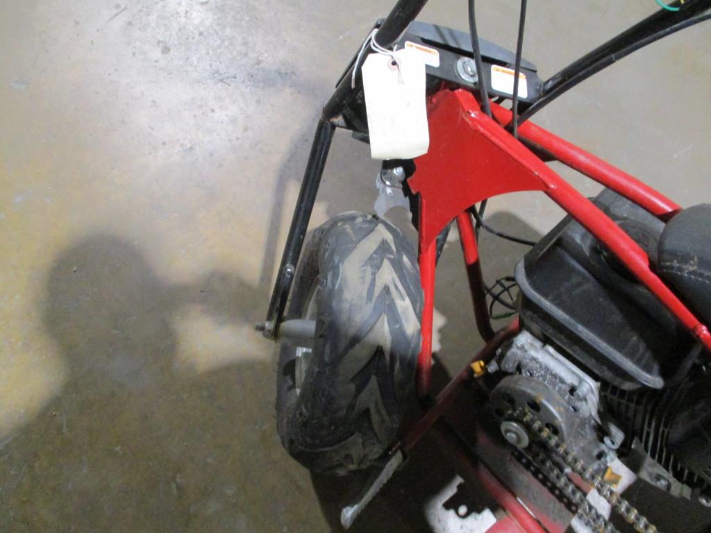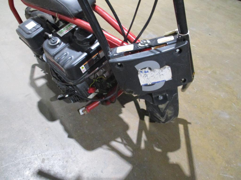 - Item info: Gas powered, pull cord start, hand brakes (disc), key start, handle throttle, predator engine 212cc, red and black, broke handle bars, missing right foot peg