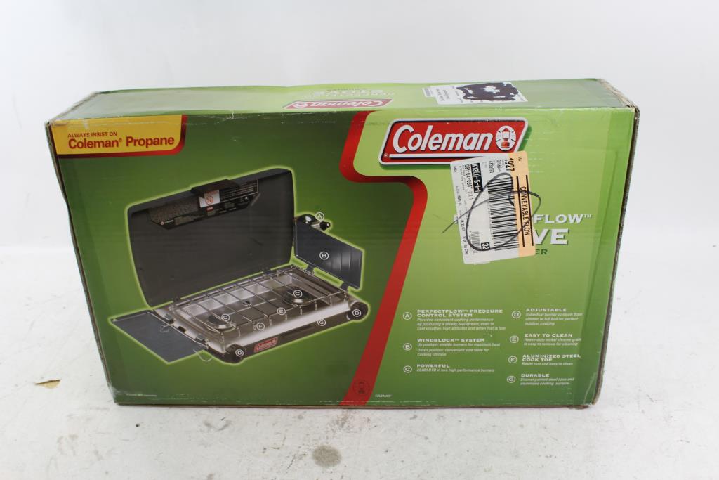 Get a great deal with this online auction for a camp stove presented by Property Room on behalf of a law enforcement or public agency client. - Coleman Perfectflow 2 Burner Camp Stove