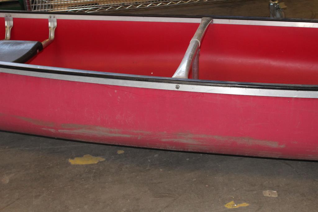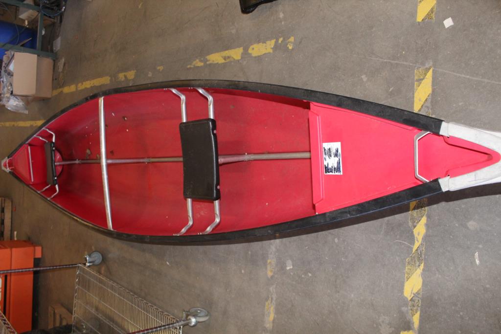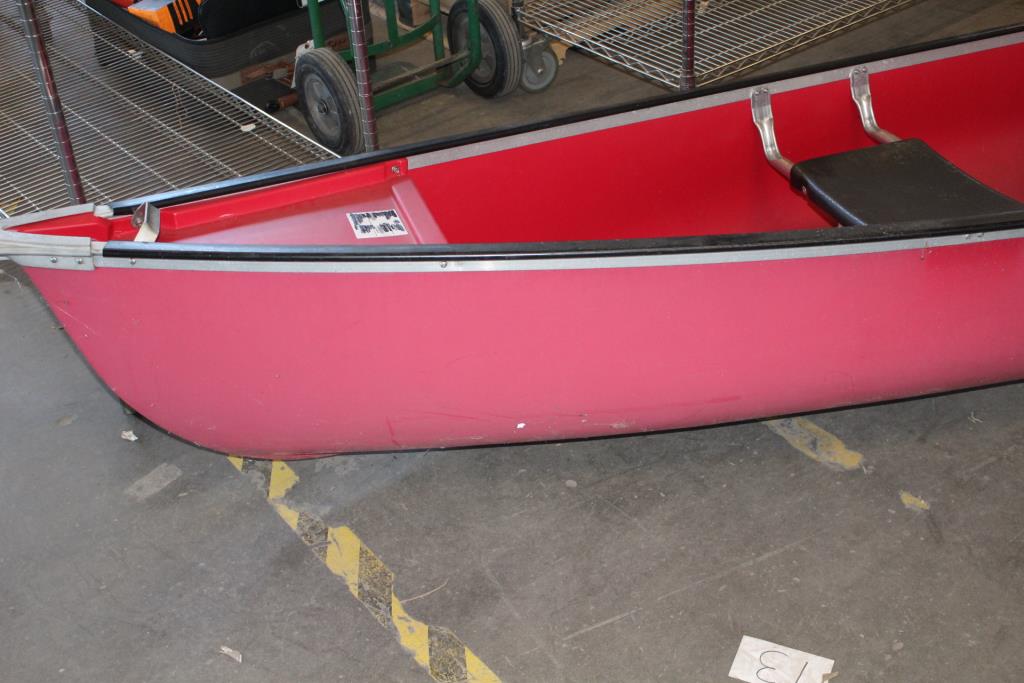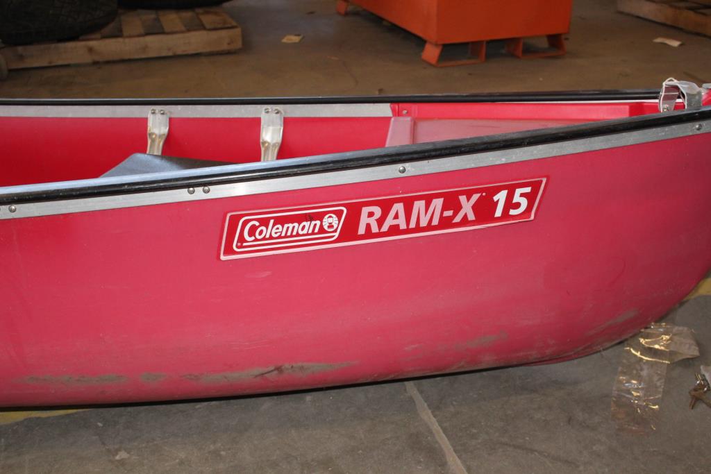 Get a great deal with this online auction for a canoe presented by Property Room on behalf of a law enforcement or public agency client. - Coleman Ram-X15 red canoe with 3-person capacity