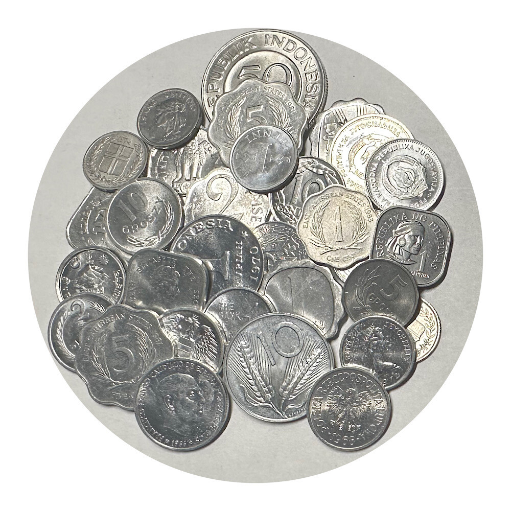 Collection of Aluminum World Coins - Over 30 Coins from 10 Countries, Very Nice