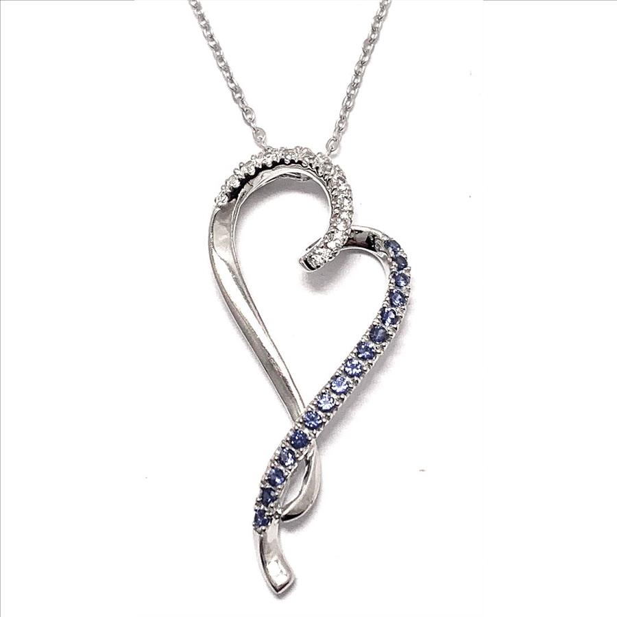 COLORE SG Lorenzo 18K .925 Sterling Silver Blue & White Sapphire Heart Necklace