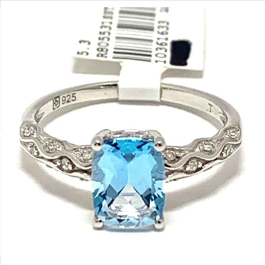 Colore SG Lorenzo 18k White Gold & .925 Sterling Silver 16 Genuine Diamonds & 1.80ctw Genuine Blue Topaz Ring